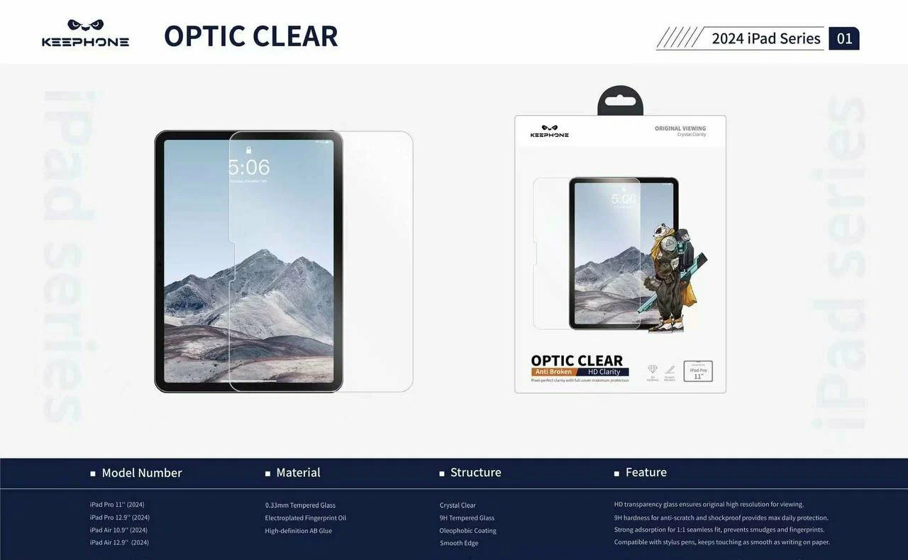 Keephone Optic Clear Protective Glass for iPad 11 Air & 11 Pro (2024) and iPad 13 Air & 13 Pro (2024)