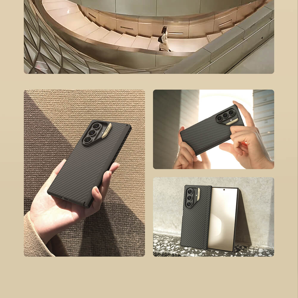 Nillkin Synthetic Fiber Pro Magnetic Carbon Fiber Case (No Front Cover) for Samsung Galaxy Z Fold7 (Fold 7 5G) – Carbon Black