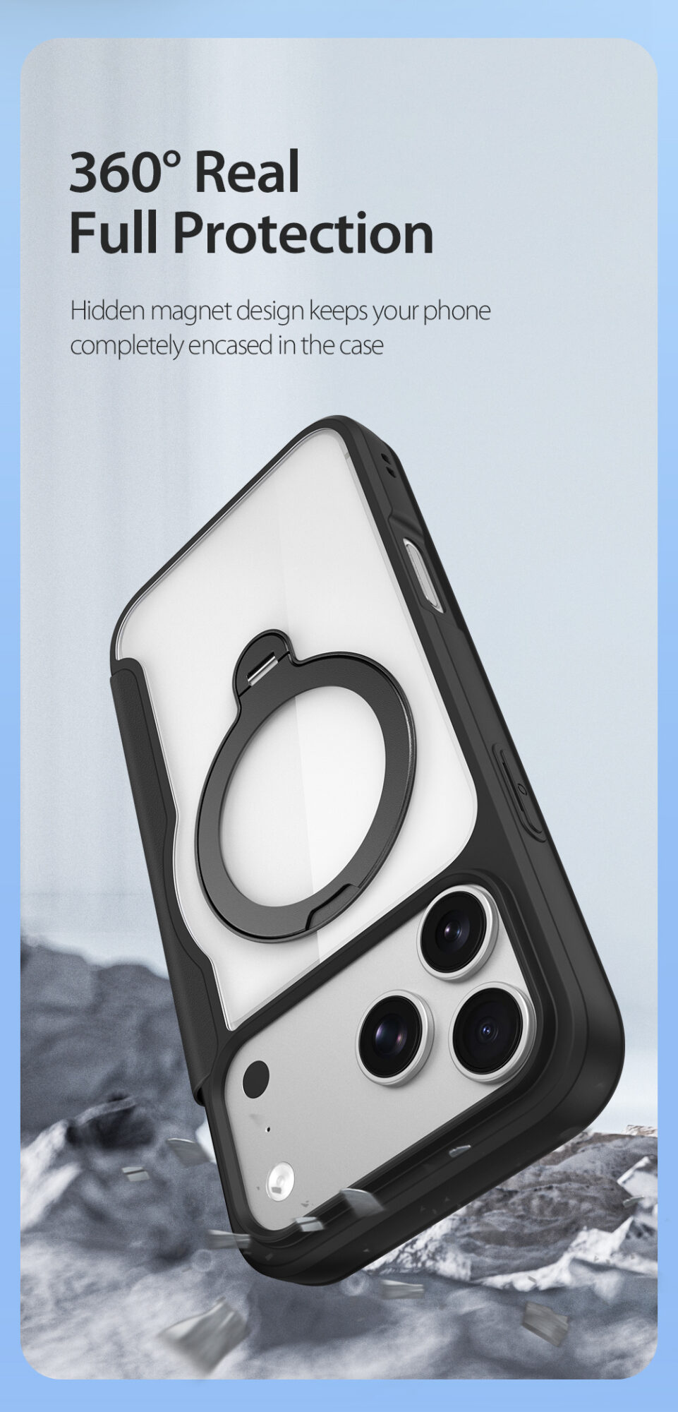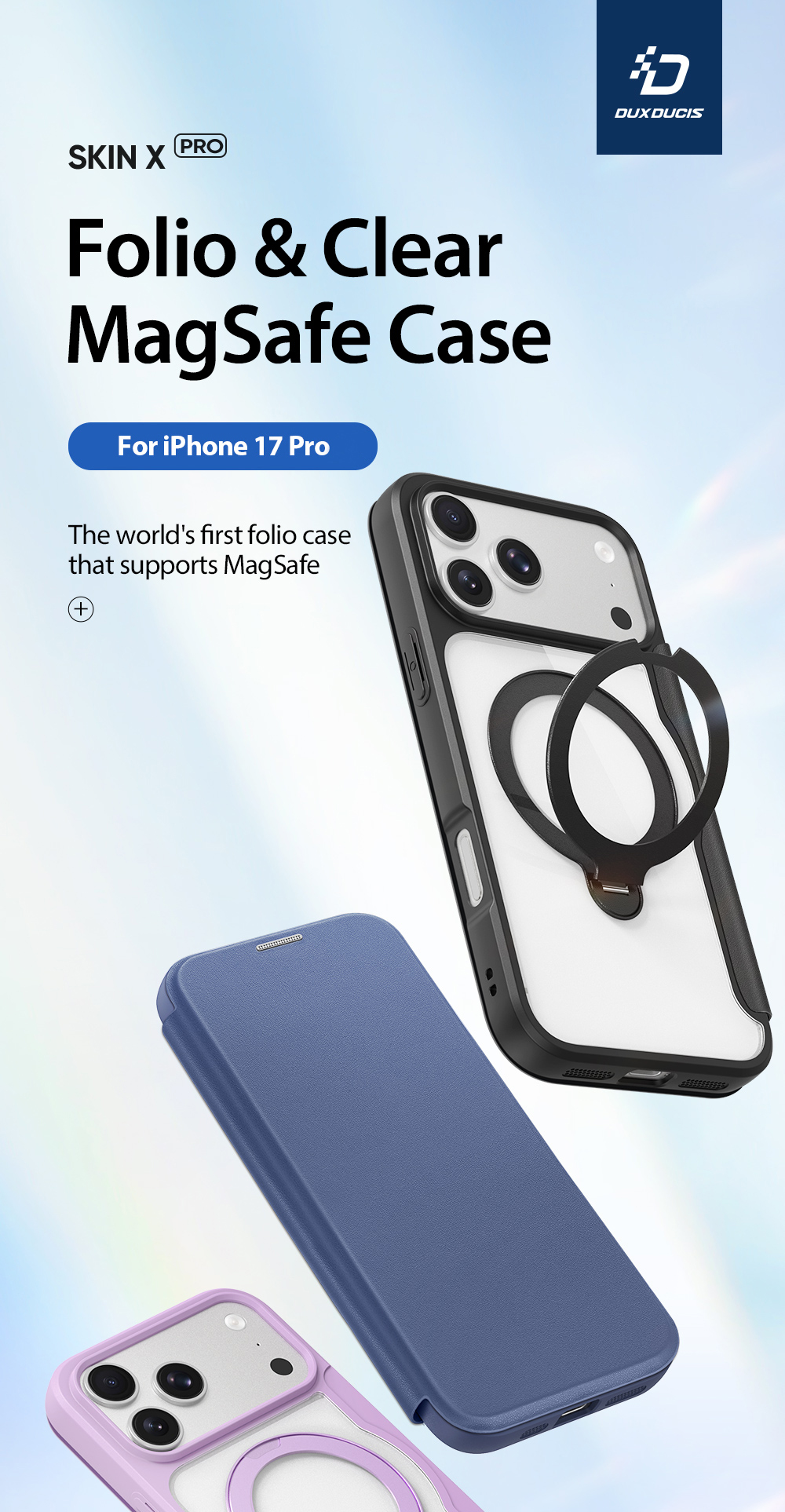 Skin X Pro Series Folio Magnetic Case with 360° Ring Stand for iPhone 17 Pro
