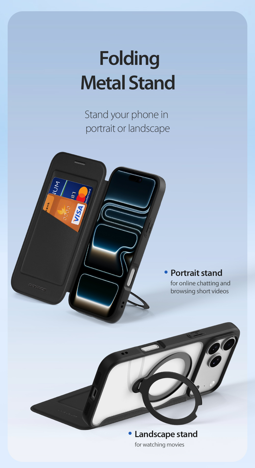 It can stand your phone in portrait or landscape, so that you can browse short-term videos or watch movies on your phone.