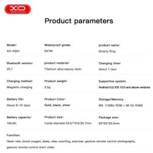Be the first to review “XO RS01 Smart Ring (Titanium Alloy, Black, Size 10)” Cancel reply