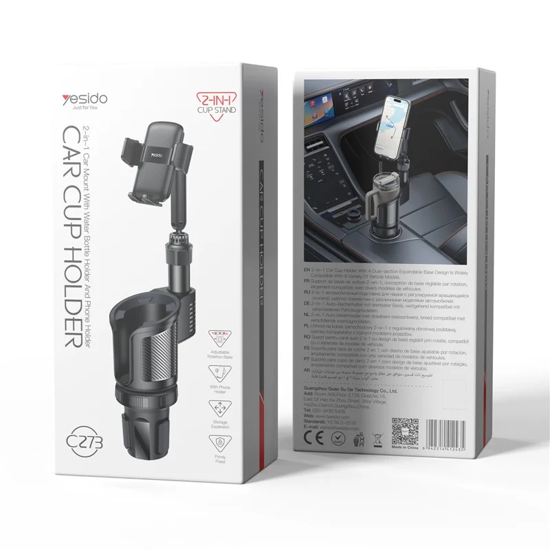 - The YESIDO C273 combines a cup holder and phone mount, offering a dual-purpose solution for your car’s interior.